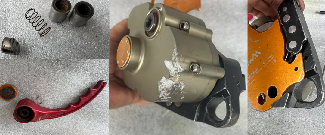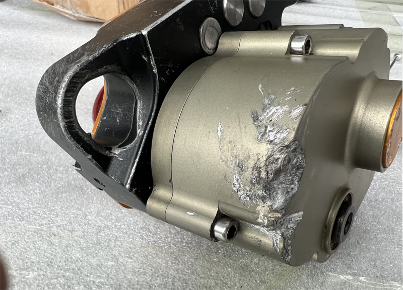 Situation: Das Gerät fiel von einer Klippe in etwa 80 Metern Höhe. Bei der Inspektion wurden Schäden am Gehäuse festgestellt, jedoch blieben die Aufhängungslöcher und Zahnräder intakt.