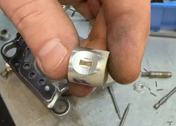 Situation: Aufgrund eines verzögerten Stopps der Bohrmaschine wurde der Seilkopf in die Seilrolle gezogen, was die Seilschutzabdeckung beschädigte.