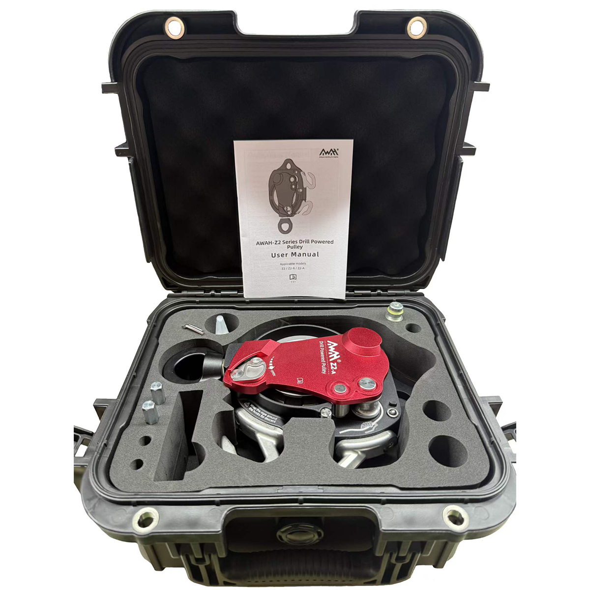The Awah Z3 Electric Lifting and Lowering Device is designed specifically for efficient and safe lifting and lowering of goods and personnel. Driven by a hand drill, this product offers automated lifting and manual lowering, making it suitable for complex and dynamic work environments. The device features an integrated dual self-locking mechanism that automatically engages in case of gearbox failure, preventing accidental falls and ensuring operational safety.